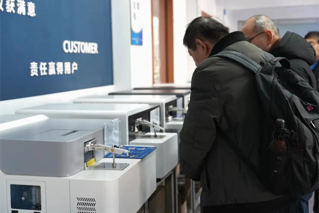 在總經理劉常維的親自陪同下,靈壽縣科工局領導一行走進了金義博直讀光譜儀的制造生產線。劉總經理詳細介紹了公司的生產流程、技術特點以及產品優勢,各位領導一邊認真聆聽,一邊仔細觀察,不時提出疑問,劉總經理都耐心解答。劉總經理表示,金義博儀器一直致力于技術創新和品質提升,從而進一步拓展市場,提升品牌的影響力。